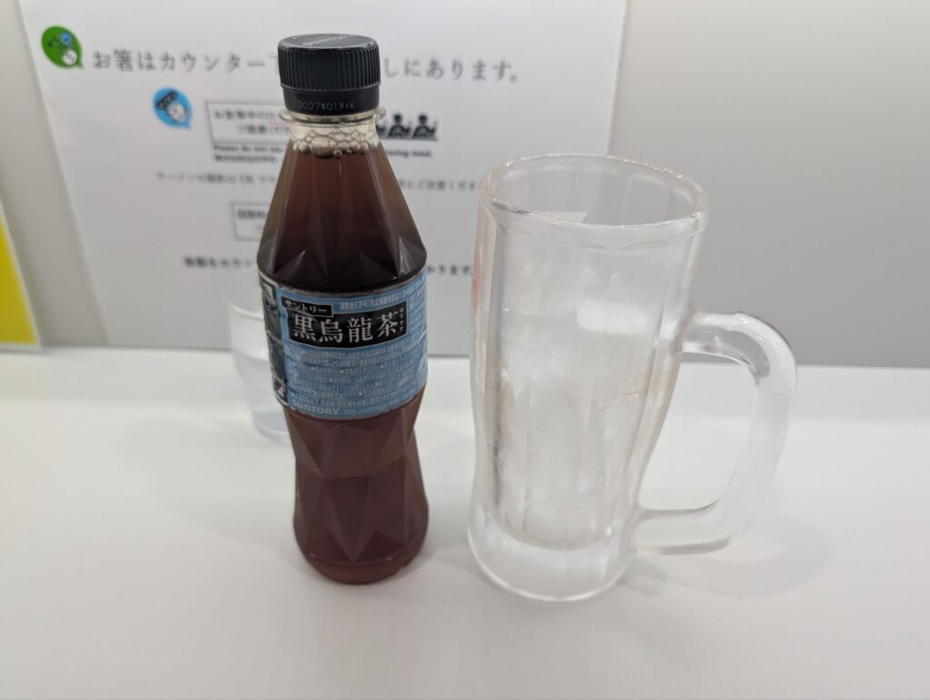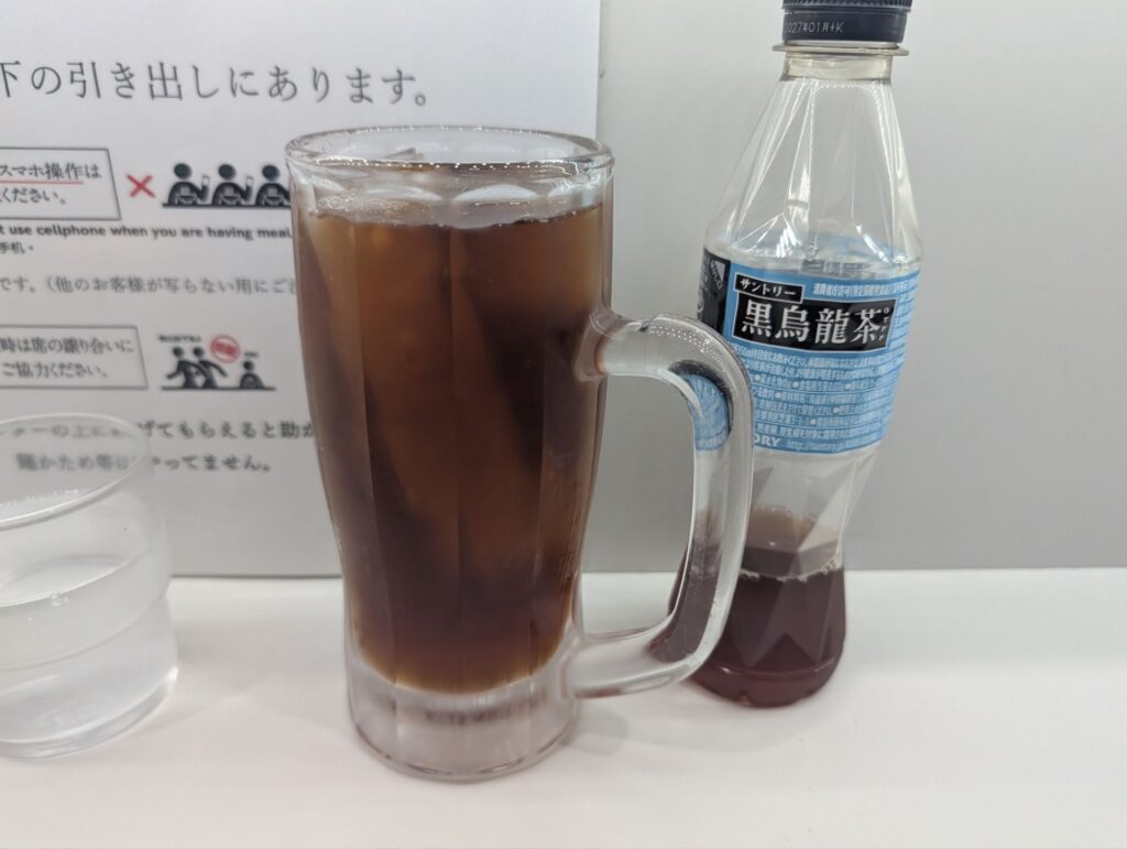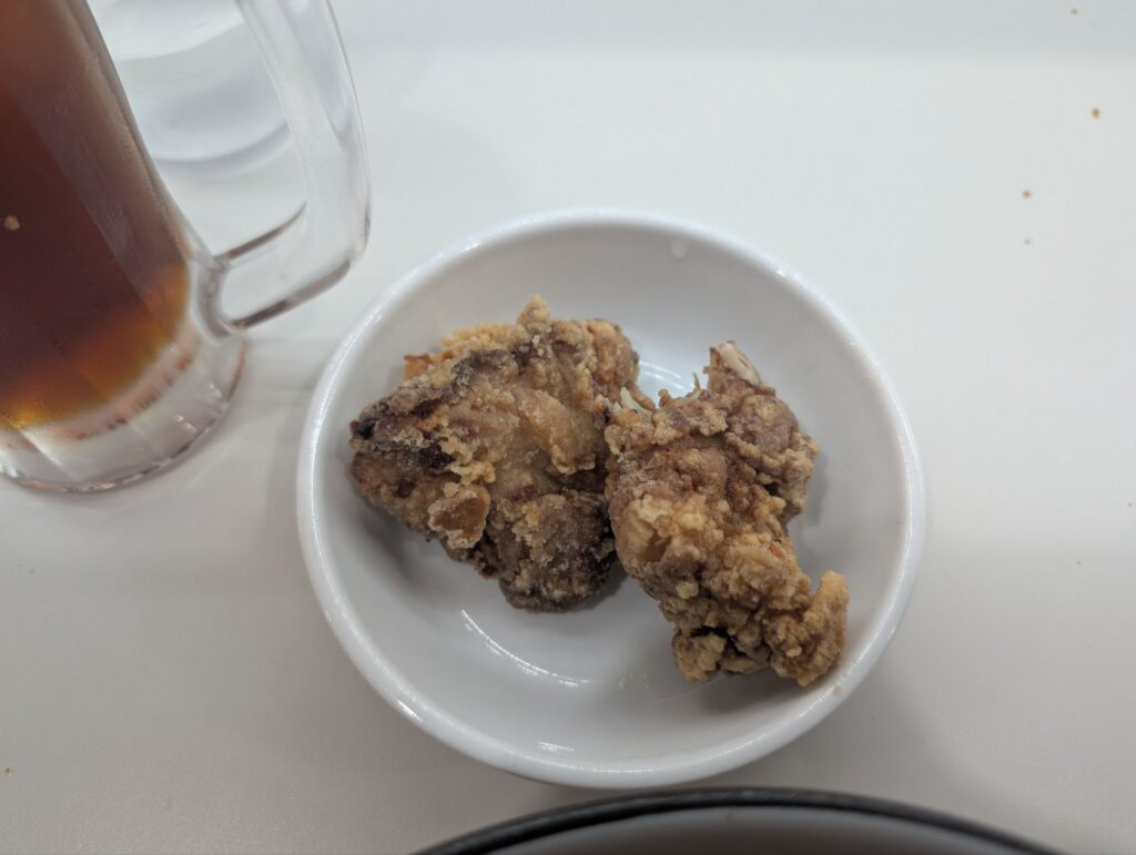 唐揚げ1個、黒烏龍茶