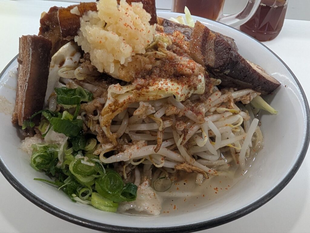 オイリー具合MAXなので途中『ウッ』と、きそうになりながら醤油ダレとニンニクのマリアージュを楽しむ🐖