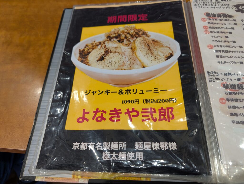 よなきや二郎 大盛 チャーシュー4枚トッピング(厚切りは2枚)