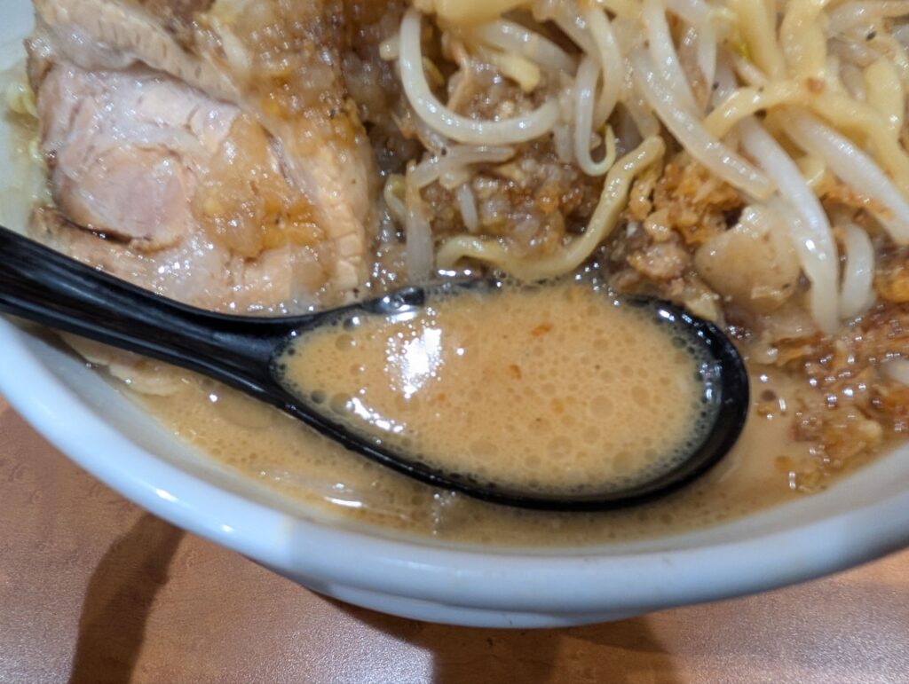 乳化したスープにはニンニクのパンチが欲しくなるね