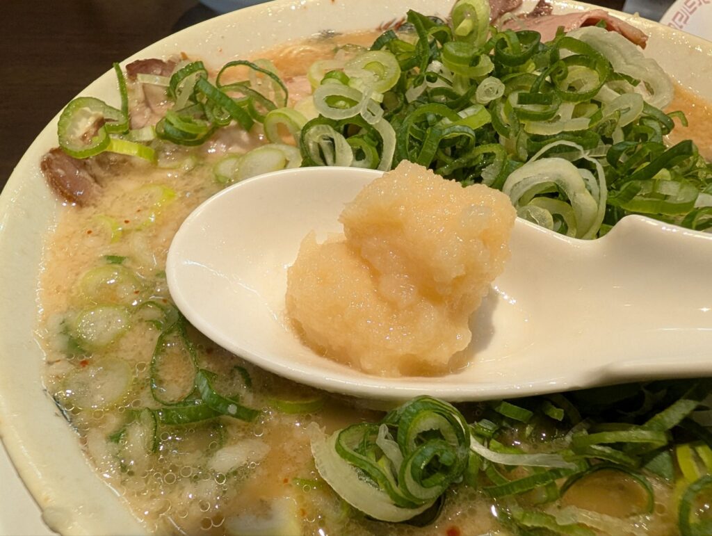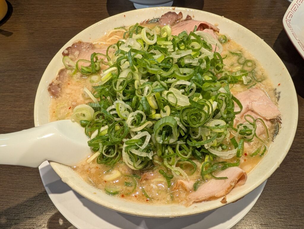 チャーシュートッピ、麺硬めネギ多め、ご飯大盛