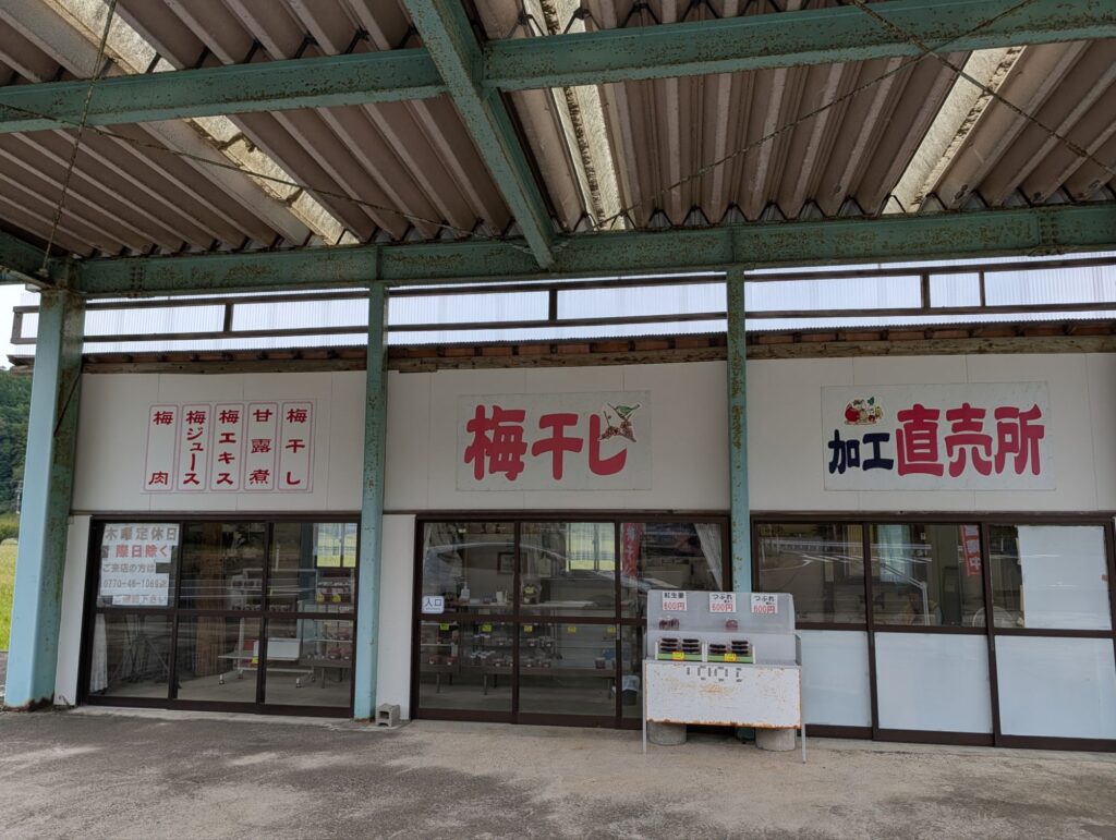 続いて若狭町の川合農園直売所へこのガソリンスタンドが潰れた建屋で営業されてるのだが…つぶれ梅安いんですよ。