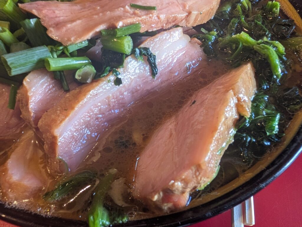 我道家さんから家系を食べたので、普通の家系ってのは”普通”ってのが我道家ベースなのでまた違いますが稲葉家さんはクリアでありつつも豚骨感もあり鶏油の旨味も主張してるという例えが上手いこと言葉にできないですが…