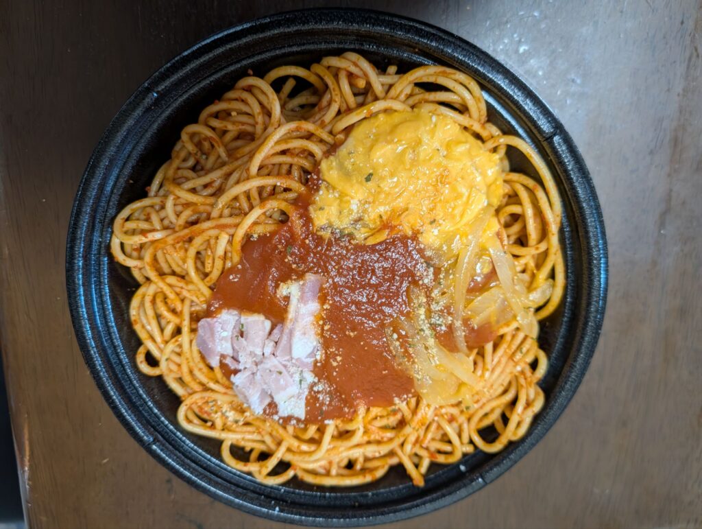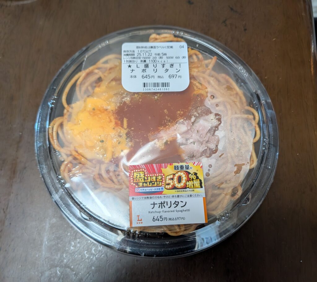 元々ローソンのナポリタンは好きなので、良く買ってましたが50%増量って情報に即購入を決めローソンへ行くと奇跡的に1個あった〜