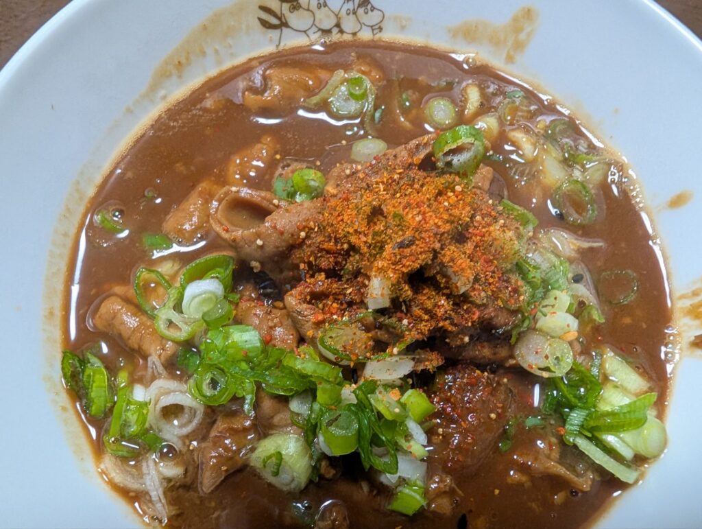 甘く煮込みあげられた豚モツがこれでもか~ってぐらい入ってます。あとデカ目の大根も5切れ程