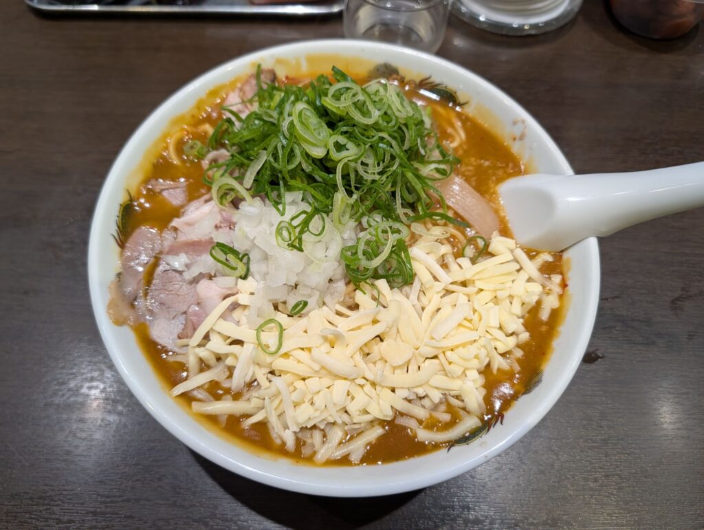 カレーラーメン変更大盛 チーズトッピング、ネギ多め