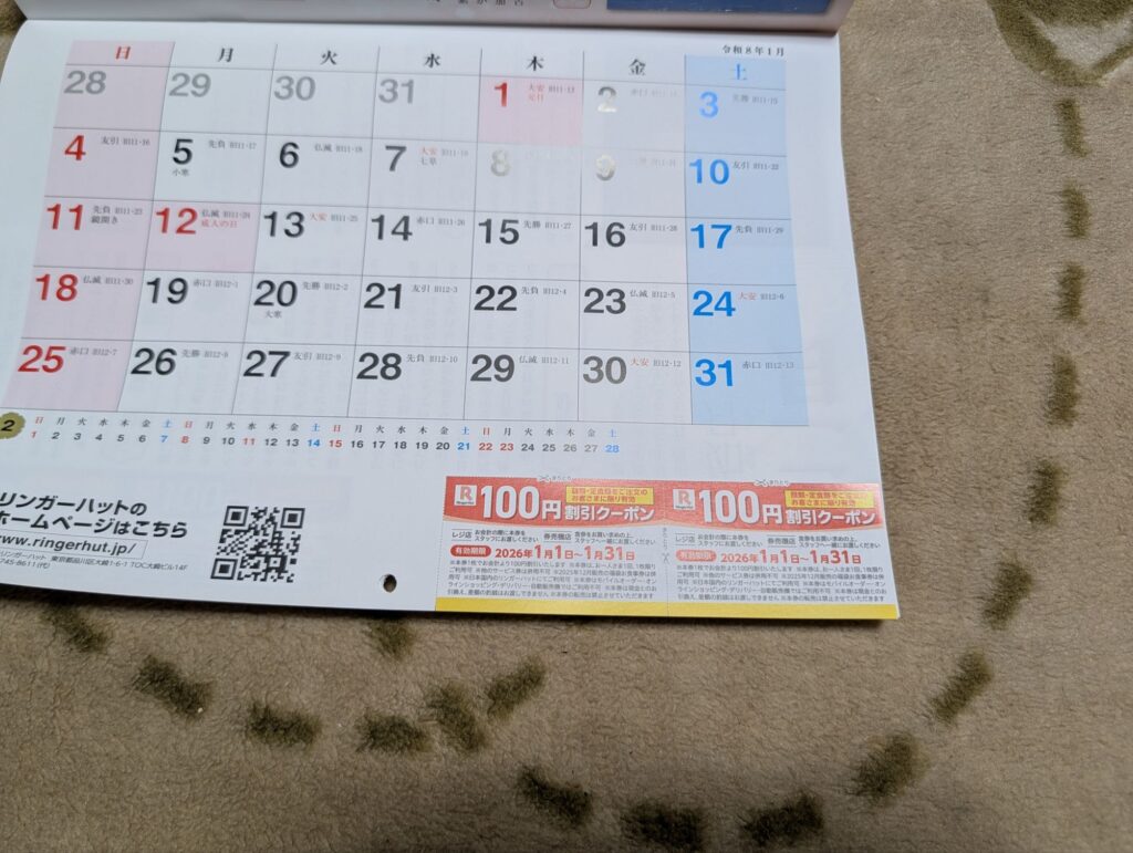 去年までは毎月餃子1人前無料がカレンダーに付いてたのに…でもお得なのは間違いないね