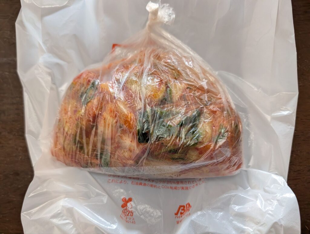 このダイムグループのキムチは浅漬けっぽいので賞味期限が購入後次の日までという超短い賞味期限(汗)